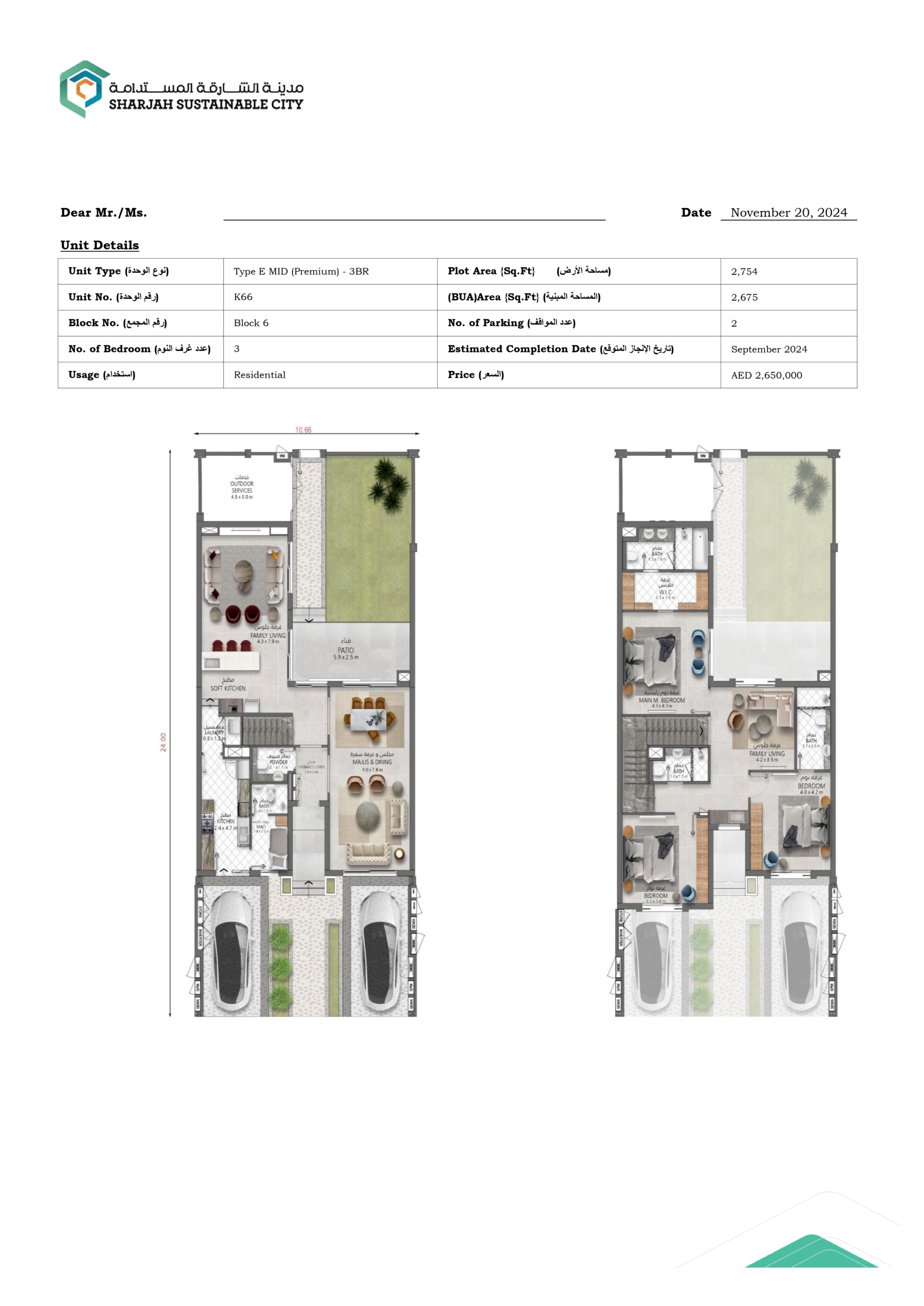 3BR + Maids Room – Type EP Mid – Sharjah Sustainable City